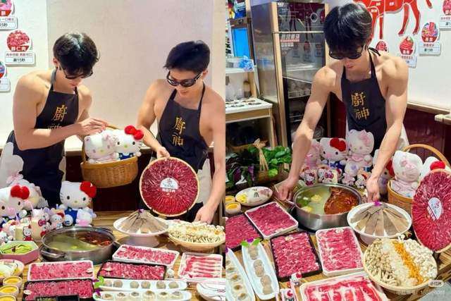 另一家位于四方坪夜市的火锅店也不遑多让,裸身穿围裙的帅哥一身腱子肉,除了提供常规火锅店的上菜服务外,还可以配合客人亲密互动照片。吃到嘴里的肉品质如何不好说,看在眼里的“肉”确实让人满意。