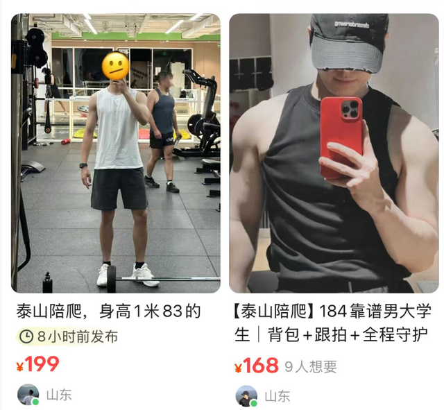 《三联生活周刊》曾报道过一位名叫史元庭的85后男演员,他因为无戏可拍又要维持生计跑到泰山当陪爬,“白天699,晚上799”,这在陪爬圈里属于均价。而小娱也了解到,有些人会提出其他需求,因此会有陪爬男性在广告中特别标注“纯绿色陪爬”。
