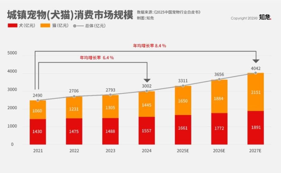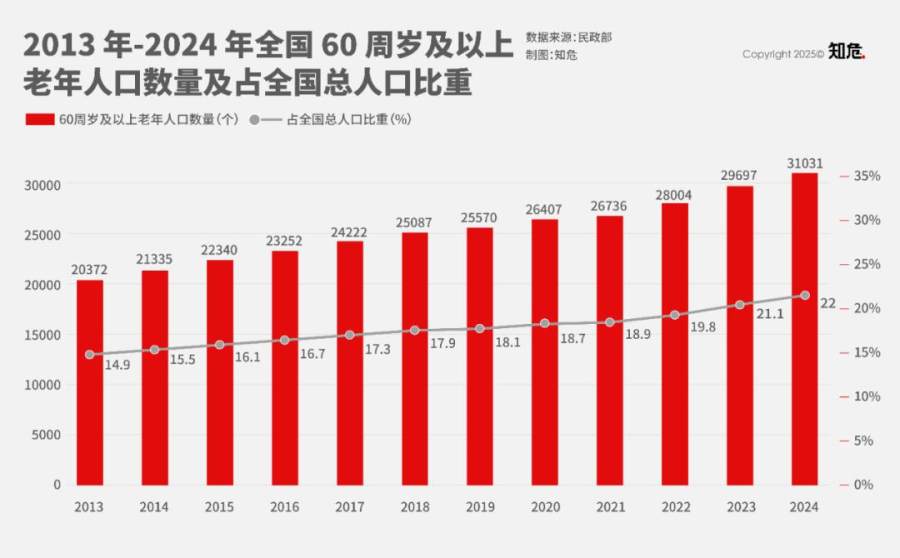 数据显示, 2024 年我国 60 岁以上人口已经突破三亿,占全国人口的 22% ;有机构预测 2025 年在线教育的规模有望超过 8000 亿,自 2020 年以来年复合增长率 11.4% ;城镇中养猫养狗的家庭也越来越多,相关消费规模近年来也水涨船高。