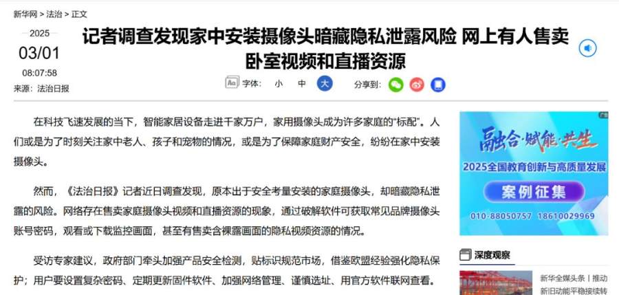 然而相关的事件近年来也没有减少。 2025 年 《 法制日报 》的记者调查发现,网络上仍有人公开售卖卧室的视频和直播资源。