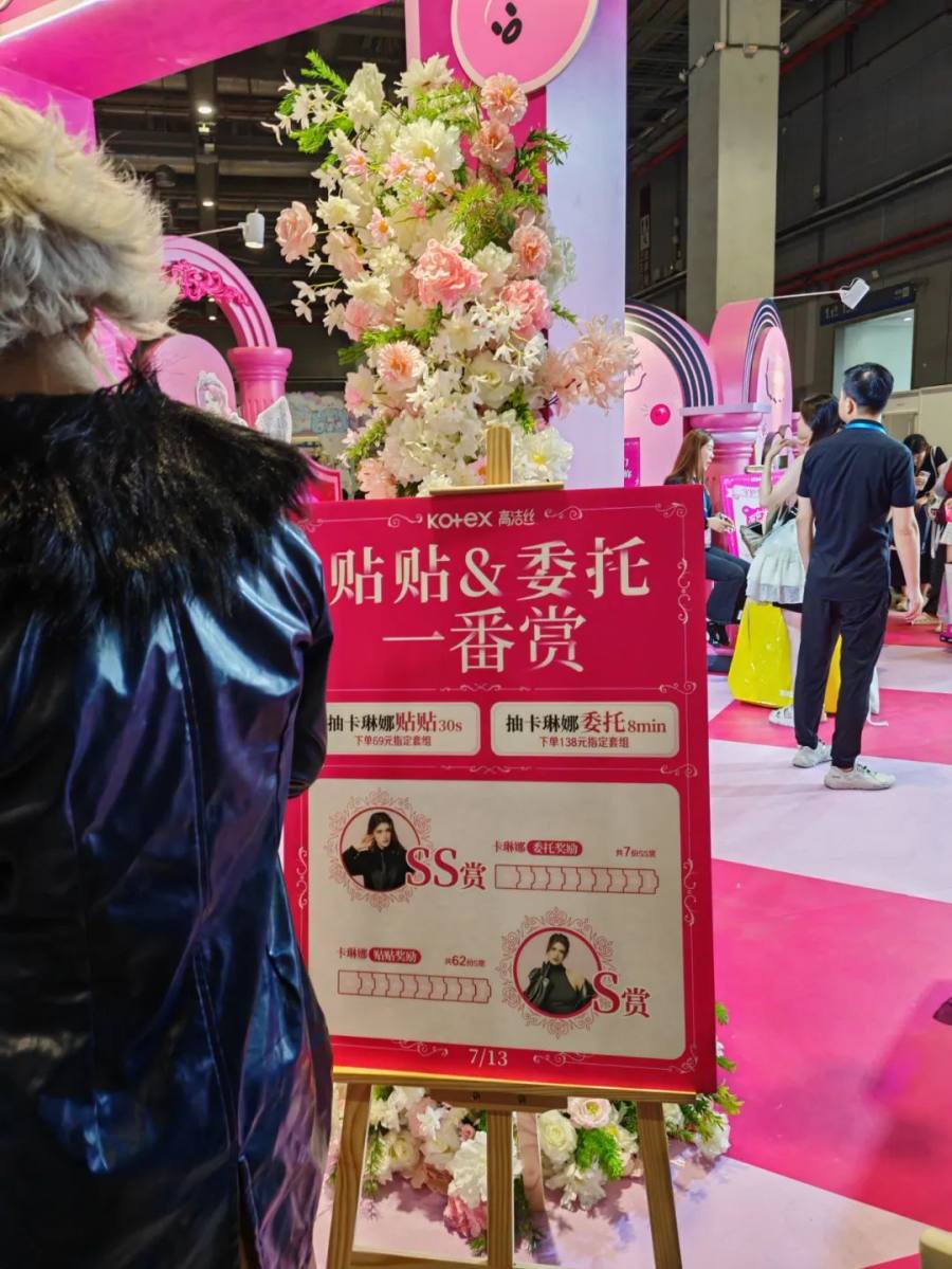 另一头高洁丝,则通过设置购买对应产品礼包获得卡琳娜周边、抽取和高洁丝守护骑士卡琳娜互动机会的玩法,在现场进行产品销售。同样颇受卡琳娜粉丝欢迎。