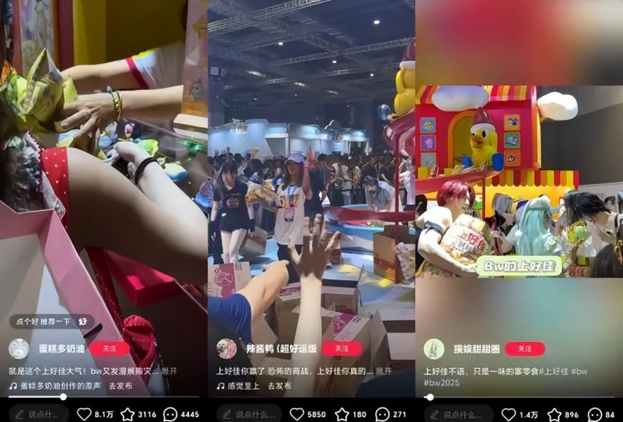 当然,除了上述两点,出圈的关键还是要有一颗“会玩的心”。以上好佳为例,尽管坐拥蛋仔派对联名,但上好佳在漫展的出圈却并非靠IP,而是靠“大方”。无门槛领取产品和见人就塞大礼包的“疯狂投喂”模式极大激发了二次元的好感度,也彻底把上好佳会玩、敢玩的形象传递而出。连续两年的CP赞助和今年的BW赞助,直接让品牌收获展会用户的一致认可,“到场先奔上好佳展位拿个够”甚至成为一条趣味梗,在社媒不断发散。