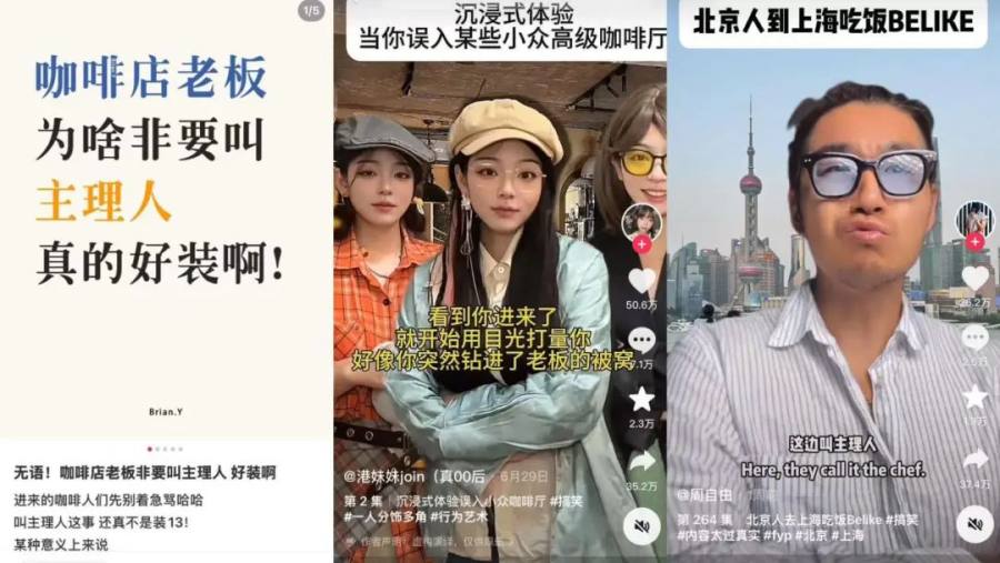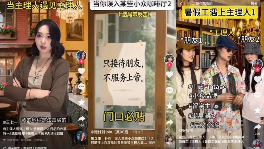 于是,全网开始群嘲:开奶茶店也叫主理人,做气球布置的也叫派对主理人,县城的小咖啡馆动辄写上“请提前预约,限量供应”的标语,不说卖的是咖啡,还以为是搞行为艺术。更别说那些短视频里经常出现的情节:冷脸接客、规则繁多、价格离谱,还要附赠一堂关于“生活方式”的教育课。