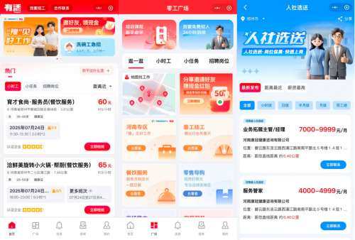 如今,河南老乡只需微信搜索 “有活 Hopped” 平台小程序,即可享受海量岗位、就近就业、灵活结算(日结/月结可选)、全程免费、薪资秒到的便利服务。无论是全职的工程维修、教师培训,还是兼职的小时工、物流分拣员,都能在平台上找到匹配选项。
