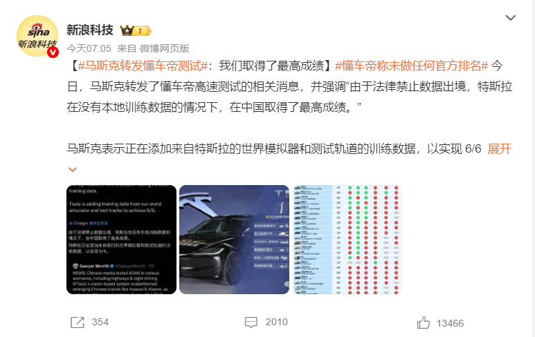 7月25日,特斯拉CEO马斯克转发了懂车帝《懂车智炼场》辅助驾驶科普节目的高速公路场景的测试视频。马斯克在转发时特别指出,特斯拉因中国数据跨境法规限制,无法将本土道路数据用于算法训练,其辅助驾驶系统完全依赖全球统一模型。