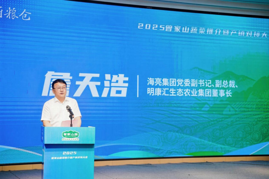 明康汇生态农业集团作为东西部协作的深度参与者,为“曾家山蔬”品牌提供从产地到餐桌的一体化解决方案。海亮集团副总裁、明康汇生态农业集团董事长詹天浩在推介中表示:“近年来,明康汇与朝天区不断深化合作,以‘滨江—朝天’东西部协作为切入点,与朝天区搭建‘广供杭州’冷链物流体系通道,从产地生产、种植、采收、仓储、包装、冷链运输的标准输入和运营指导,到拓展长三角市场销售渠道,全链路深度协同打响“曾家山蔬”区域公用品牌,以品牌之力激发乡村产业振兴势能,取得了重大突破。”