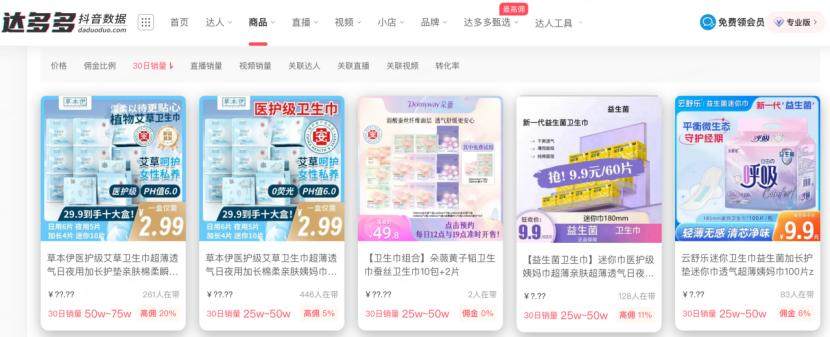 6月以来,东方甄选上线的第一款卫生巾,全网开售两天内销售18万单。达多多数据显示,自上线以来,仅在抖音平台,销售额预估高达1800万元。让黄子韬“赌上所有”力推的朵薇卫生巾,上线一个月也卖出了1.2亿片,销售额约8000万元。