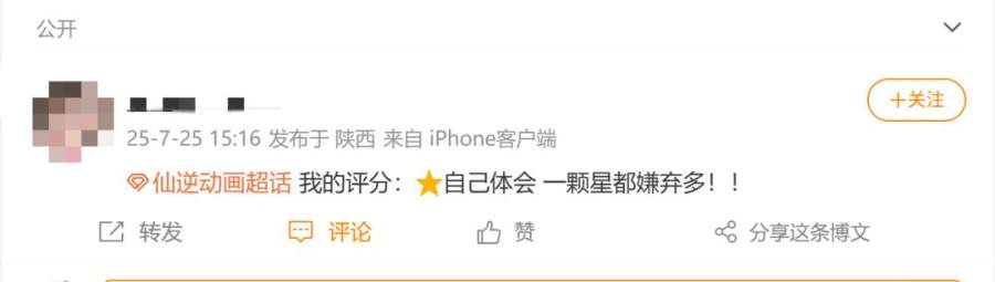 现在仍有粉丝在微博上为《仙逆》打一颗星