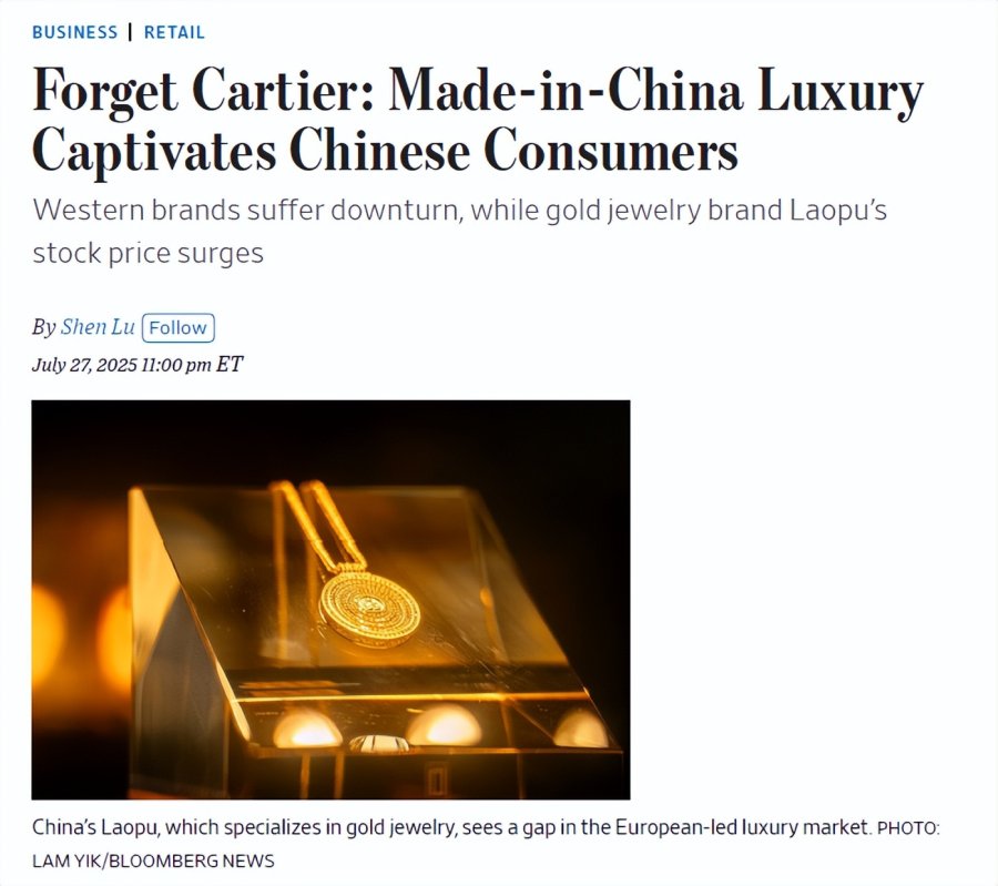 《忘掉卡地亚:中国本土奢侈品正俘获中国消费者》!美国《华尔街日报》在最新的文章中,在试图弄清一个事实,到底是什么原因让欧美传统奢侈品牌在中国迷失了?或者,更直白地讲,为何中国的消费者迷上了老铺黄金这家中国品牌。