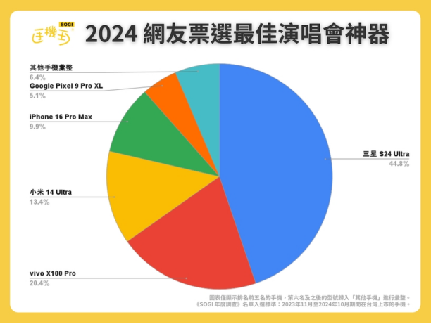 2024年,三星推出S24 Ultra,升级为双长焦系统并引入AI驱动的四重变焦引擎,以44.8%得票率当选“最佳演唱会神机”。
