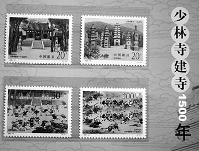 1995年8月30日 中国第一套反映寺院题材的邮票——《少林寺建寺1500年》纪念邮票发行。