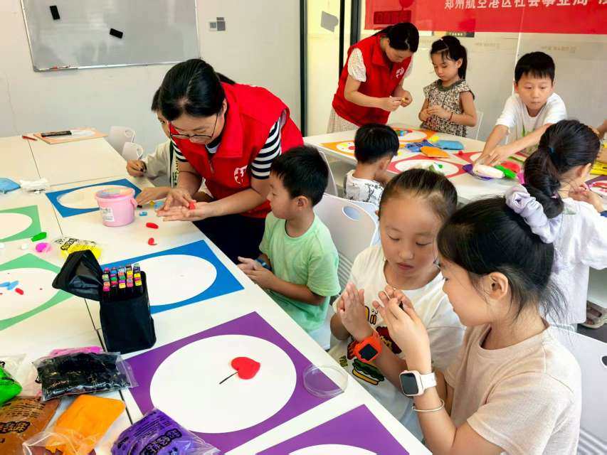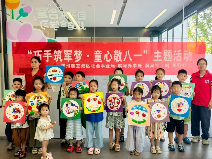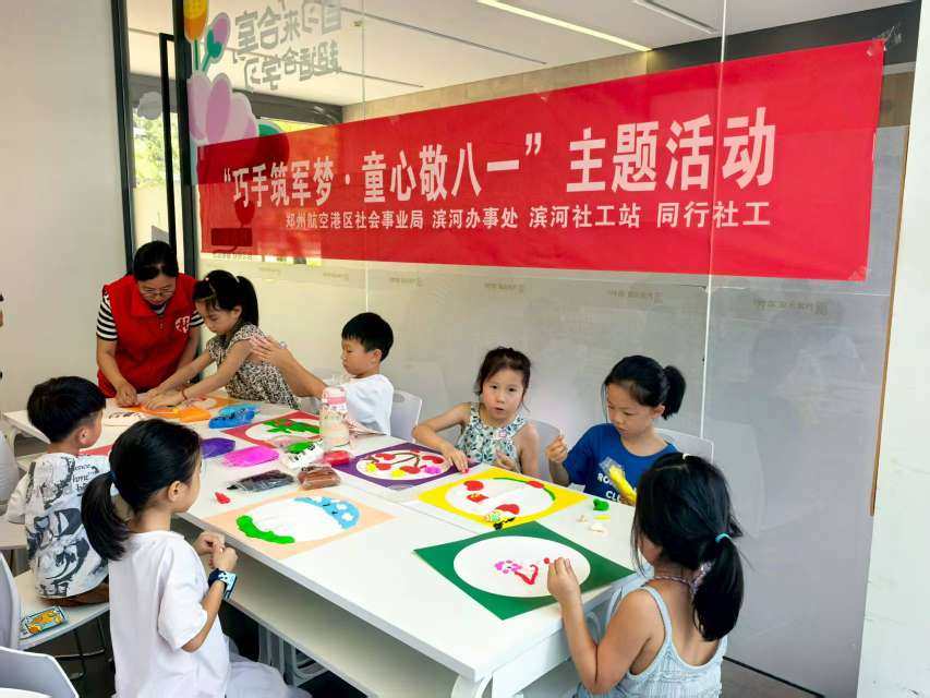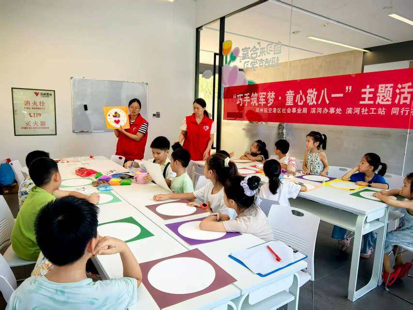 为庆祝“八一”建军节,弘扬爱国主义精神,8月1日,在郑州航空港区社会事业局和滨河办事处的指导下,滨河社工站联合归航路社区,在永威南樾四期合室小课堂开展“巧手筑军梦·童心敬八一”超轻黏土手工画主题活动。