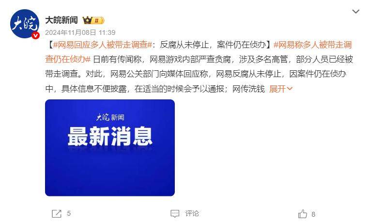 据《每日经济新闻》,游戏行业分析师张书乐对媒体表示,此刻的密集反腐就是在为未来“排雷”,对于公司健康发展意义重大。