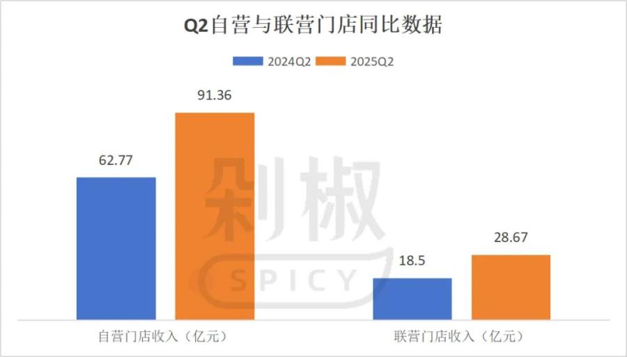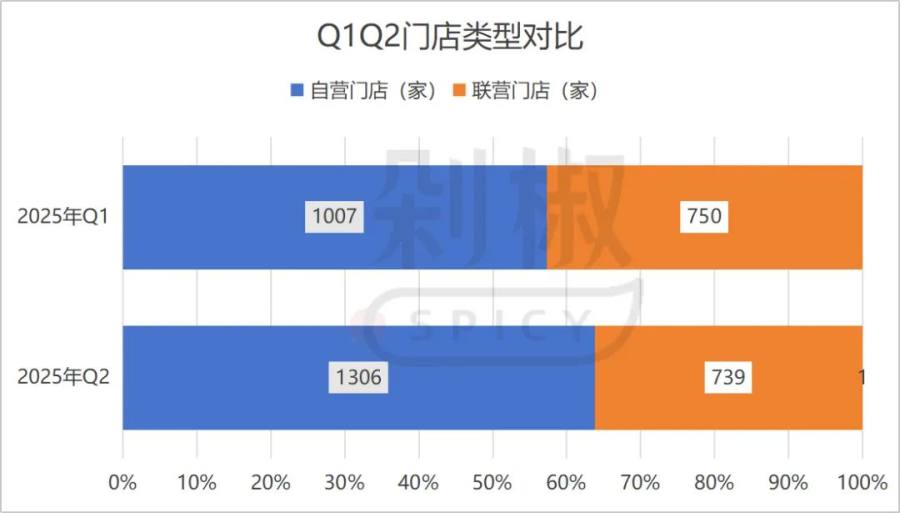 但比单纯的数量增长更值得关注的,是门店结构的深层调整,尽管两季度总开店数差距不大,二季度的扩张重心却明显向自营门店倾斜。