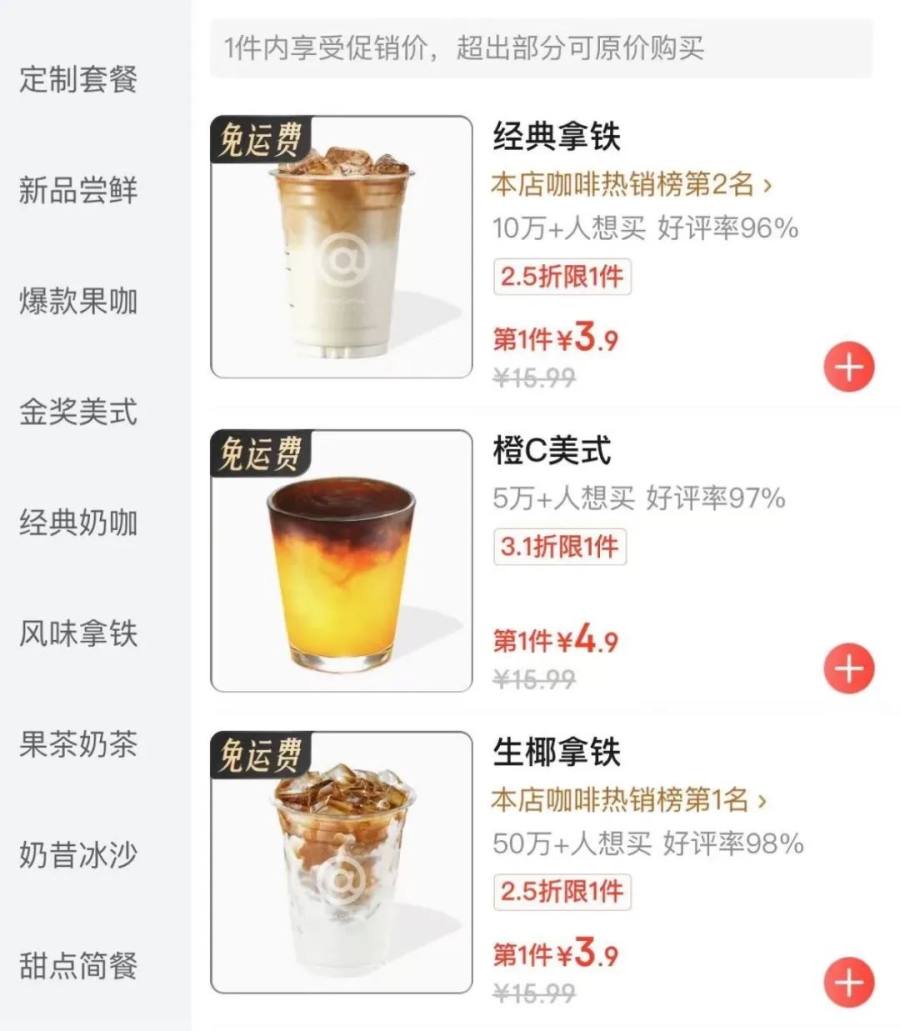 相较于成本压力,更棘手的是品牌定位的“倒退”。库迪本就锚定低价高杯量策略,补贴只是其影响力扩张的放大器;而瑞幸花三年时间将客单价从9.9元提升至15元,好不容易挽回部分品牌心智,却因这场大战被平台重新拽回低价战场。