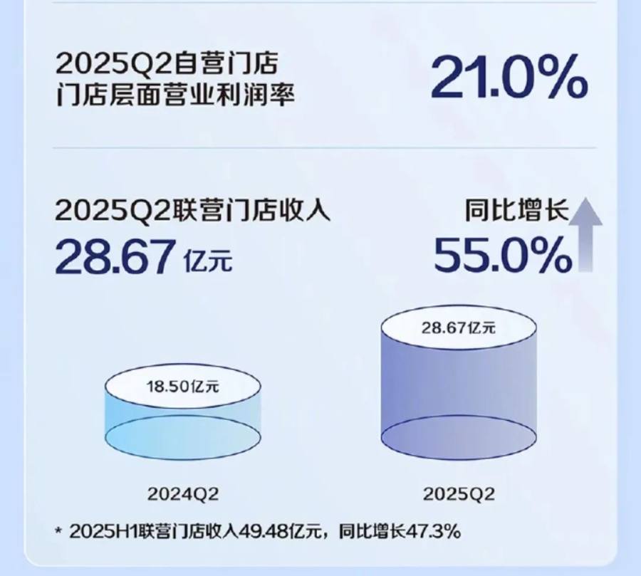 这种策略倾斜并非偶然,行业规律显示,当品牌对单店盈利能力充满底气时,往往会倾向扩大自营比例以强化对终端的绝对控制权。瑞幸的表现恰好印证了这一点,其自营门店同店销售增长率达13.4%,较一季度的8.1%进一步提升。