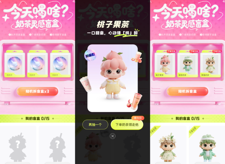 从美团到小红书,平台方也开始复制这一路径,借助“奶茶+盲盒”的内容与打卡分享机制,放大社交与情绪连接的价值。收集盲盒成为用户主动参与度较高的一种营销形式。