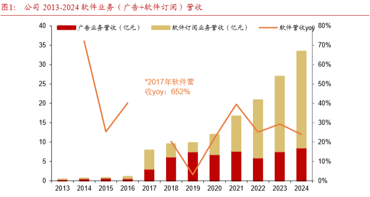 2022年底,美图开始在生成式AI方向上持续投入,从最初的“AI影像”功能切入,逐步构建起覆盖AI图片、AI视频、AI设计等多个场景的产品矩阵。2023年,美图收入同比增长近三成,实现归母净利润大幅回正;2024年继续保持增长,利润规模突破5亿元。产品端的变化带动了业务结构优化,AI转型驱动软件订阅收入增长,成为公司整体向上的关键推动力。