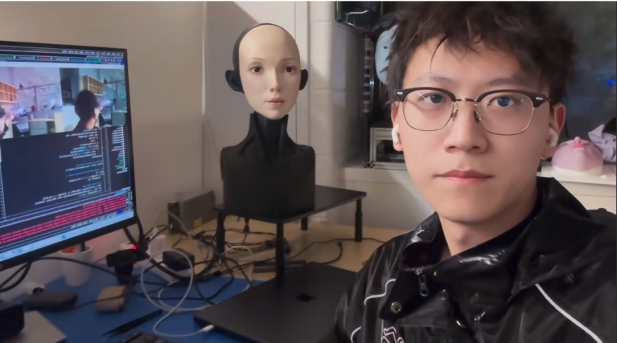 首形科技创始人胡宇航和人脸机器人“Emo”,图片来自胡宇航(U航)抖音视频