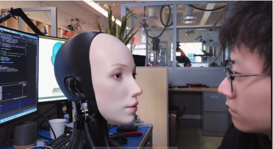 人类也是通过看镜子来学会做表情的。我们的第一套AI是让机器人学习“自己脸动起来是什么样”。第二套AI是去看互联网视频,学“人类是怎么做表情的”。两者结合,才能做出自然的表情。
