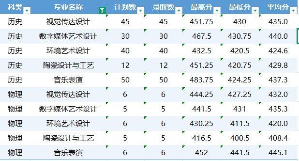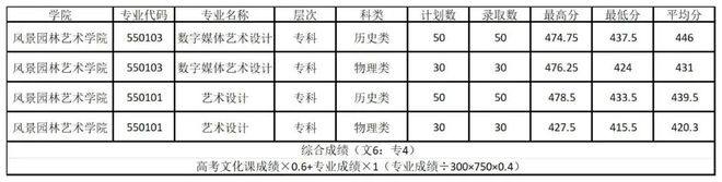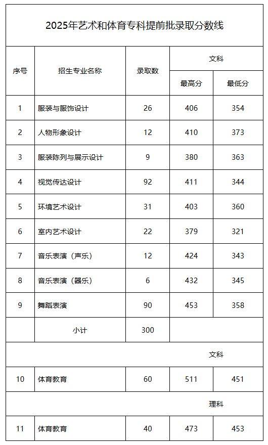 艺术高职(专科)批录取分数见下表: