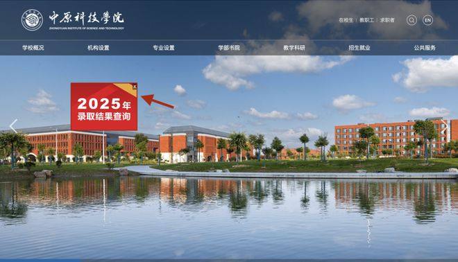 或中原科技学院招生信息网页面