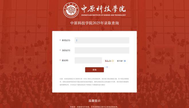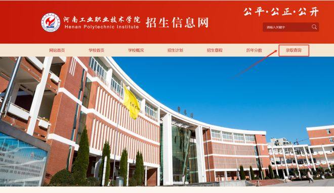 第一步:进入郑州电力高等专科学校招生信息网 ,在首页点击“录取查询”按钮。
