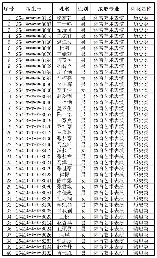 艺术高职(专科)批录取新生名册