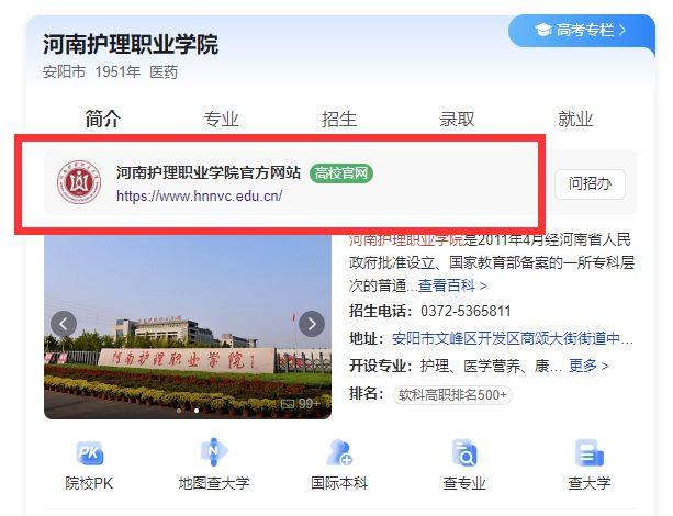 1.浏览器搜索“河南护理职业学院”。