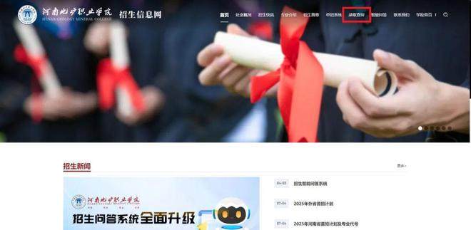 2.进入后点击悬浮窗口“河南护理职业学院2025年高考录取结果查询”。