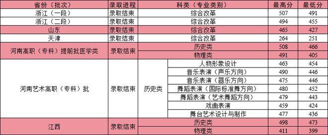 8月5日,已发布河南省高职单招批、河南省体育高职(专科)批、河南省艺术高职(专科)批录取结果。