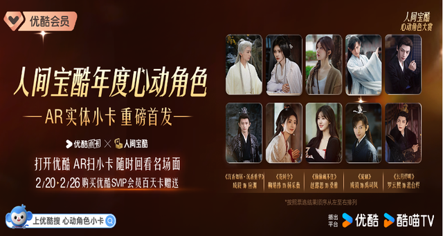 与此同时,优酷小卡也在会员生态中打通了全新协同路径。2024年,优酷小卡联合“人间宝酷”厂牌与优酷会员,共同发起“年度心动角色”票选活动,累计投票数超过1亿。活动期间,票选结果TOP 5可解锁对应角色AR小卡,用户购买会员即可获得限定AR小卡,扫描后便可随时重温对应角色在剧集(《沉香如屑》《花间令》《偷偷藏不住》《琉璃》《长月烬明》)中的名场面。这种“投票+抽卡+回看”的机制串联了会员拉新、剧集激活与卡牌消费,成功将老剧内容变为新流量入口。