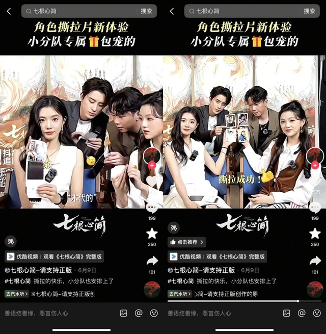 除了技术联动之外,优酷还在卡牌“可玩性”方面持续打磨工艺升级。明星圈曾一度流行的“撕拉相片”概念,如今被优酷转化为实体卡设计中最具参与感的“撕拉卡”。