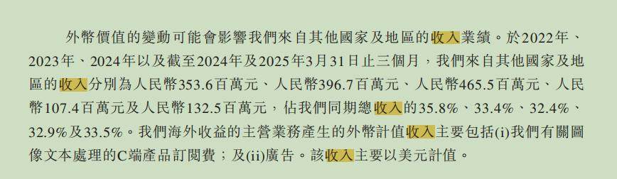 不过,合合信息的主力营收并未在海外,且近三年海外营收占比呈下降趋势,国内市场仍然是合合信息最重要的营收地。招股书数据显示,2022年,合合信息海外收入为人民币3.5亿元,占同期总营收的35.8%;而到了2024年,这一比例下降至32.4%。