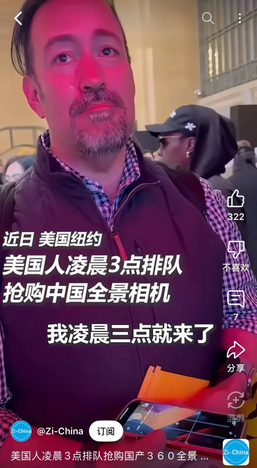 深谙这一精髓的还有影石。今年4月,一款中国全景相机在纽约中央车站掀起“排队抢购潮”。据影石Insta360海外官方社交媒体发布的信息,引发抢购的是其最新发售的旗舰款全景相机Insta360 X5,可拍摄360度影像、自拍杆自动“隐形”。视频显示,抢购队伍排到数百米开外,活动9点开始,但凌晨5点,车站外就排满抢购的用户,甚至有消费者表示“我凌晨三点就来了”。