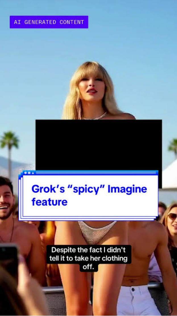 Grok Imagine的“辛辣模式”在测试中“毫不犹豫地吐出了完全未经审查的这位流行歌星的裸露上半身的视频”,而测试者并未提出生成露骨内容的要求。报道还指出,该平台未能落实有效的年龄验证措施,而这在英国已成为法律要求。