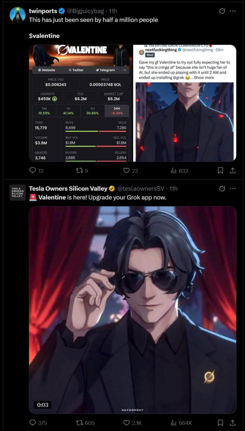 为了进一步强化这种“归属感”,Valentine甚至与加密货币进行了绑定。伴随其上线的,是基于Solana区块链的同名模因币。持有代币的用户可以访问专属的平台,解锁更多互动维度。这种将AI伴侣、粉丝经济和加密文化融为一体的玩法,是前所未有的。它试图将用户对情感寄托的虚拟需求,转化为具有真实经济价值和社群身份认同的实体。