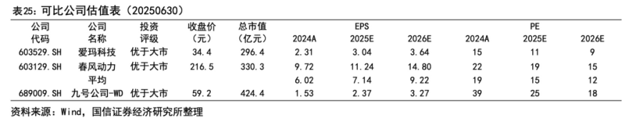 国信证券经济研究所最新研报分析,九号公司电动两轮车持续扩展终端门店,多项其他业务正处于快速发展阶段,新兴业务逐步开始起量,给予九号25年29-30xPE。这在A股消费电子板块中属于中高区间。作为对比,爱玛与春风不仅不足20PE,在分析中还存在下滑趋势。