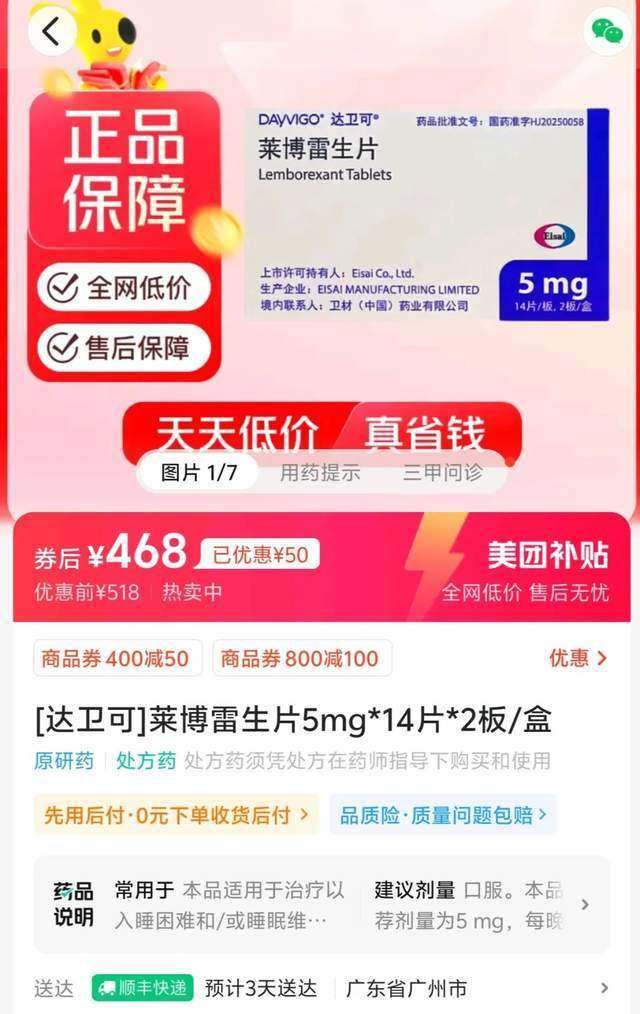 而最近,一款名为莱博雷生的新药在美团首发上线,或许能为失眠患者带来新的希望。