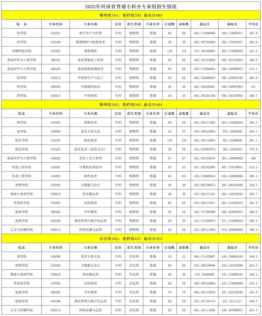 信阳农林学院2025年高职高专批录取情况及分数线!