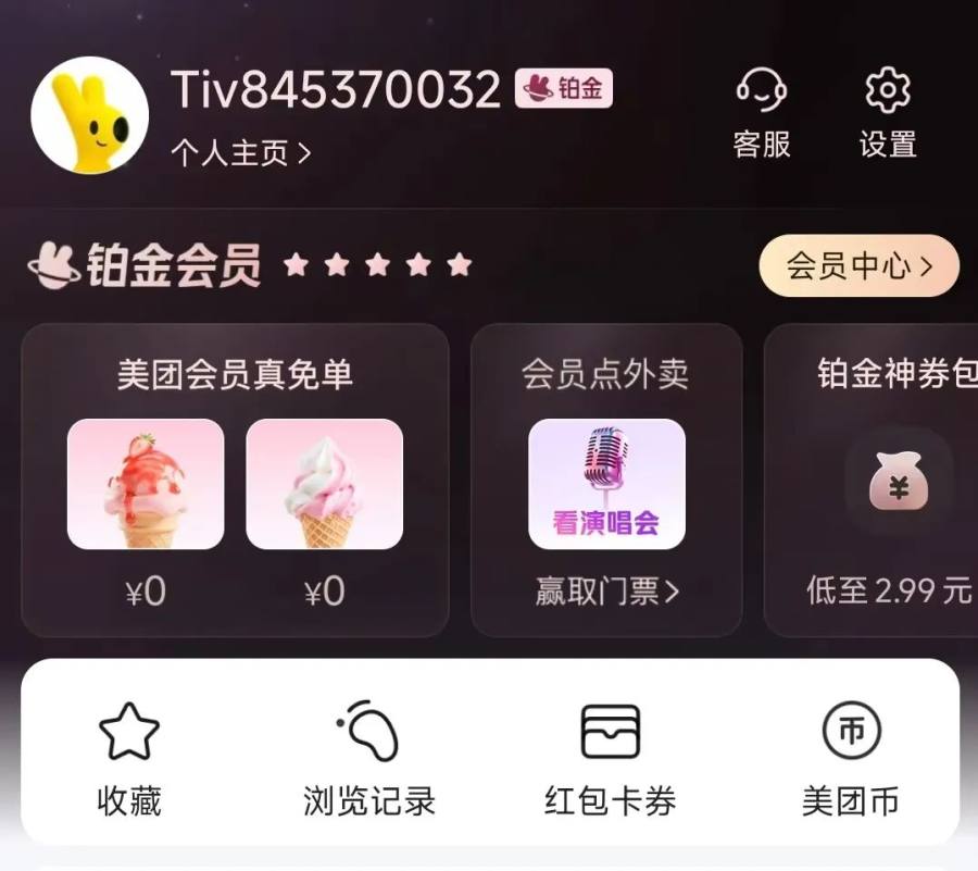 当前美团会员按照等级分为六大类,最高等级为黑钻会员。