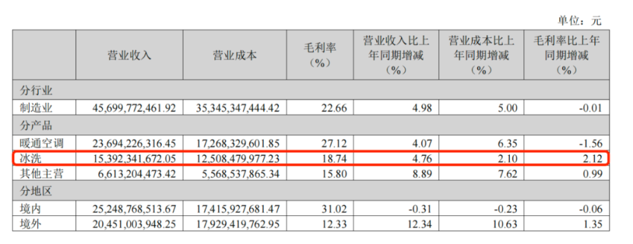 若将海信家电营收拆解,分业务来看更为清晰。今年上半年,除了核心业务暖通空调占据营收半边天,冰洗业务成为新亮点。