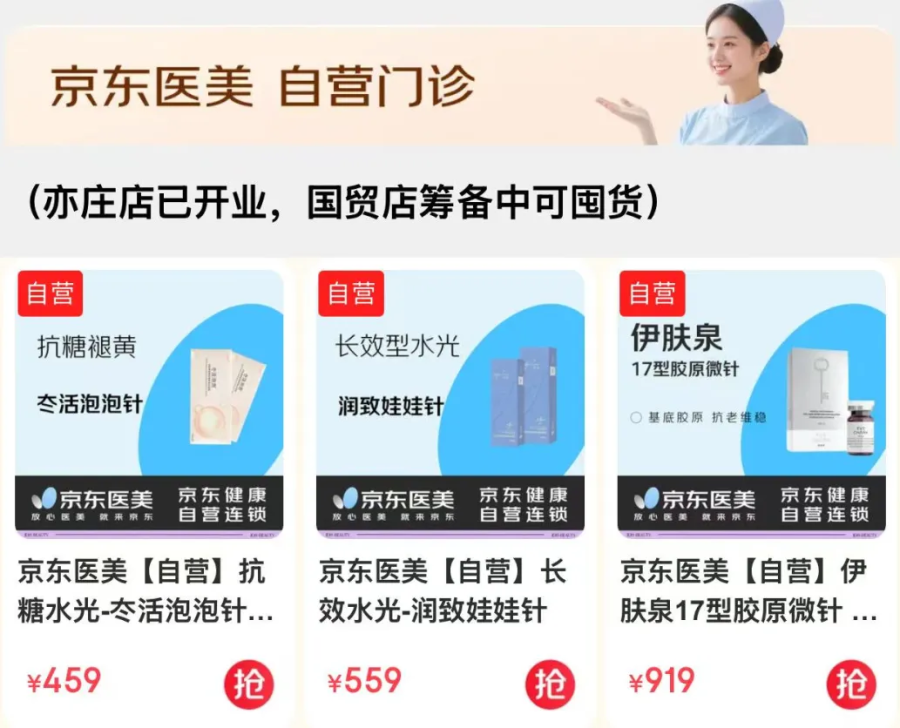 近日,京东健康首家线下医美诊所“京东医美”在北京亦庄正式开业,该诊所主打水光美塑、除皱抗衰、瘦脸嫩肤等轻医美项目,定价亲民,多数产品价格在千元以下,项目单价与行业头部机构促销期间的价格相当,意图以高性价比和低价策略抢占市场。