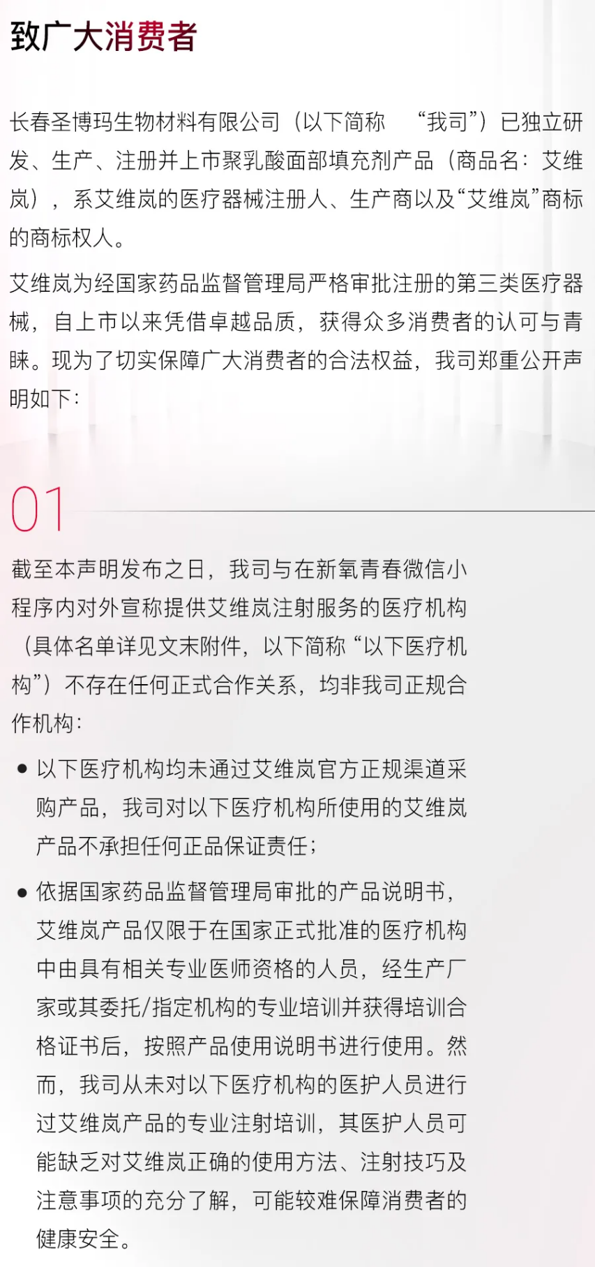 对此,生产商艾尔建发表声明指出,许多在抖音平台销售乔雅登系列产品的医美机构,并未通过其授权的经销商采购相关产品。公司因此怀疑这些机构在提供医疗服务时,可能使用了与宣传不符、非正规渠道购入,甚至是未经批准或假冒伪劣的产品。