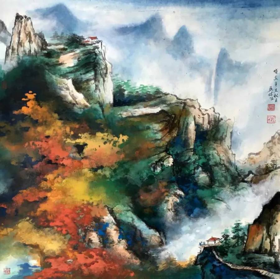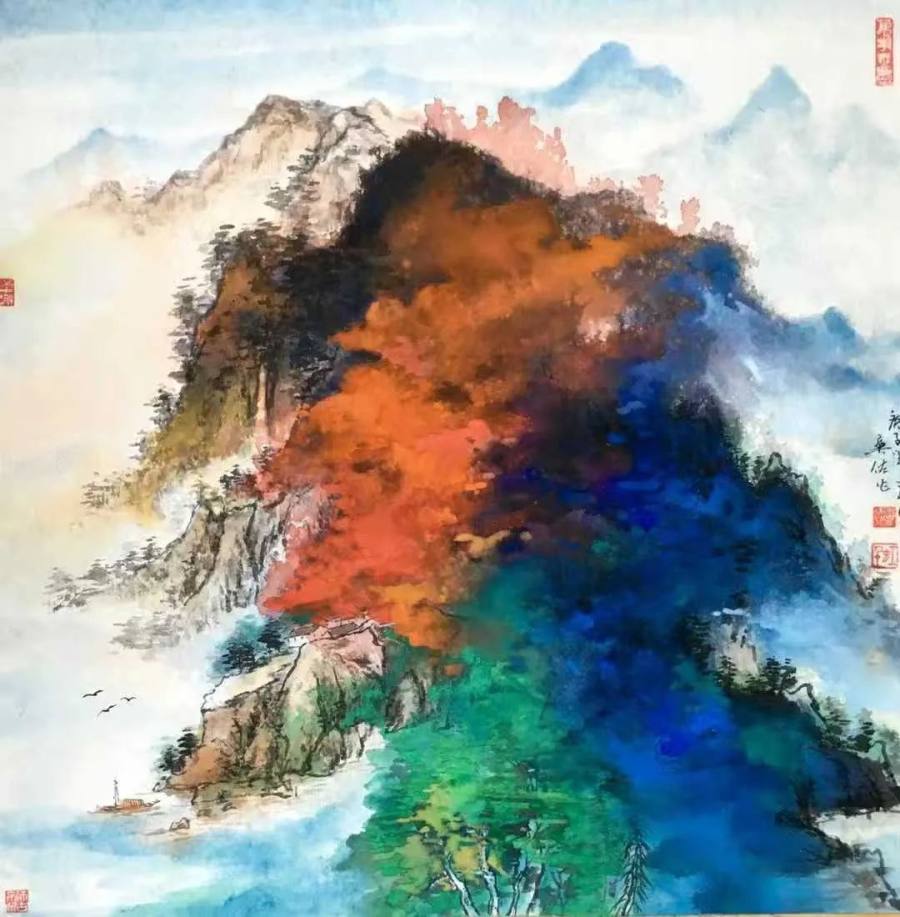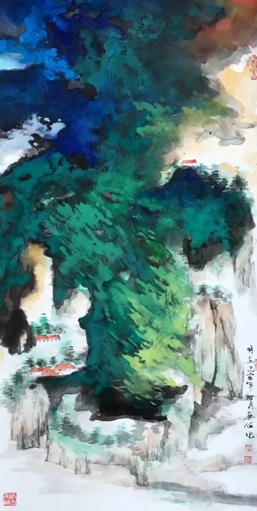 近年来,先生顺延着山水画发展方向的脉络,努力以传统技法与人文精神为基础,融合现代抽象感,精心揣摩着传统绘画“水墨”与西方绘画“色彩”的真谛。他的新作独标新韵,时而粗犷豪放、枯槁苍茫,时而彩墨淋漓、缤纷有致。既有不失传统的笔墨,又有赏心悦目的色韵,且层次丰富、浓淡相宜、华而不浮、厚而不腻,令人耳目一新,为之震撼。