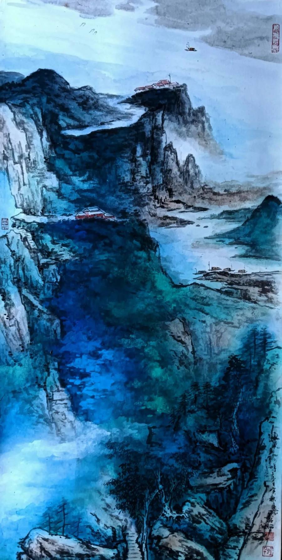 同时,还系统地接受了油画、水粉等西画的训练,掌握了娴熟的绘画的技巧,作品风格诗意荡漾,才情横溢。既雄奇浩荡、气势磅礴,又清逸隽永、华兹秀润,笔墨画风中尽显生机勃勃,博大深邃中透出空灵蕴籍。