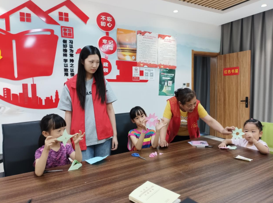 活动中,在志愿者的讲解下,孩子们迫不及待地拿起工具开始创作。随着活动的推进,一张张普通的彩纸在孩子们手中逐渐变成了形态各异的作品,孩子们高高举起自己的作品,脸上洋溢着自豪与喜悦,互相分享着创作背后的故事。