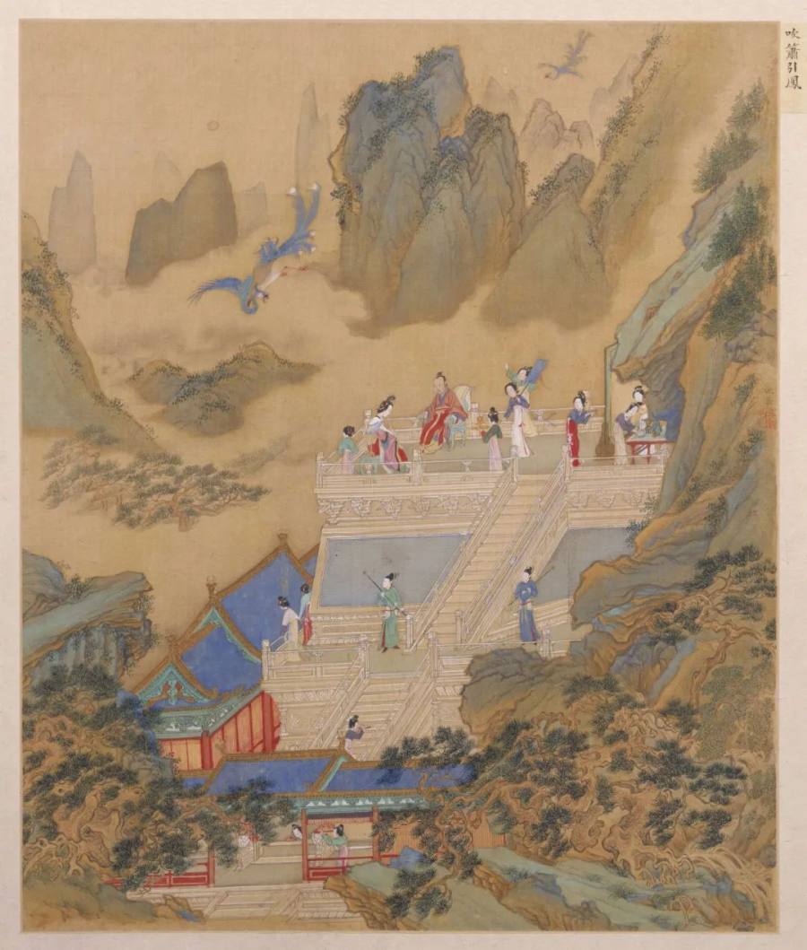 清箫载风,鸣奏和雅;人心宁静,群峰相和。高台近云,仙禽来仪,香雾轻绕,彩羽映栏;歌笑渐起,袖影流波。全幅庄丽而不燥,繁密而有序;宫苑恢宏,山林深秀。观至尾声,似闻音波回环,于胸成潮;举目远天,云霞明灿;低头阶磴,纹理细密。卷在案上,光气溢窗,读罢神清。