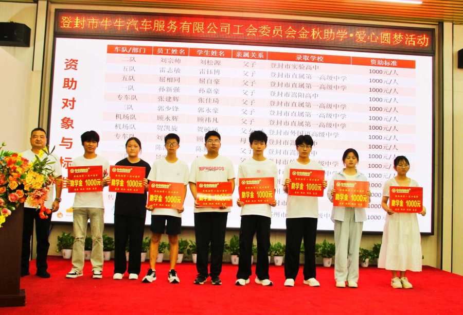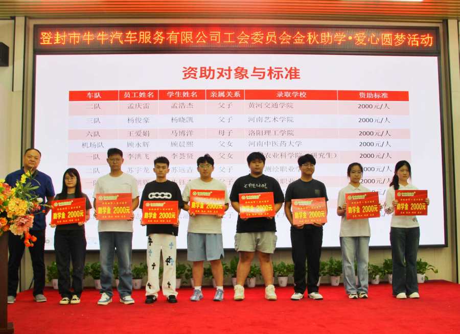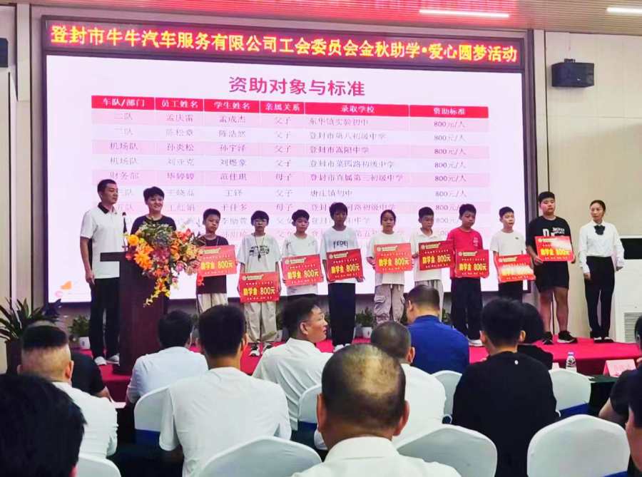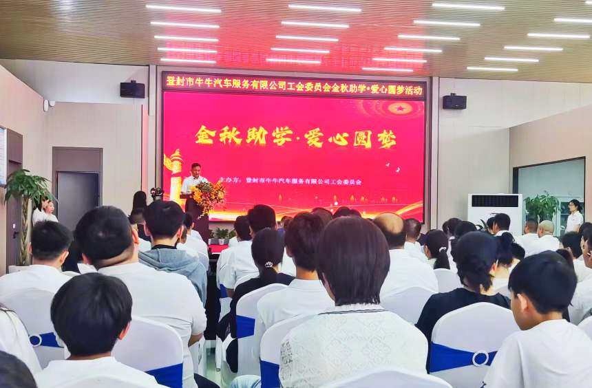 8月15日上午,登封牛牛汽车服务有限公司会议室内早已暖意涌动。该公司"金秋助学-爱心圆梦"活动在此隆重举行。登封市委统战部、市总工会、市交通运输局、市新联会等单位领导与受助学生及家长齐聚一堂,共同见证这场传递温暖与希望的公益行动。