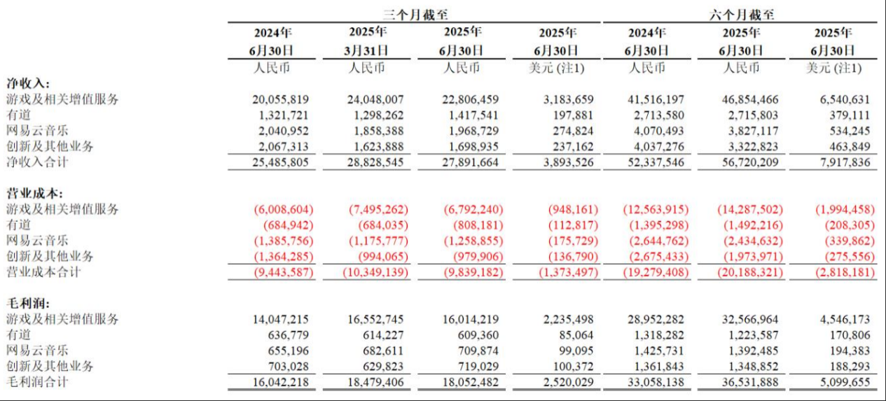 网易2025Q2财报:营收同比增9.4%,游戏业务延续强势,《燕云十六声》表现超预期